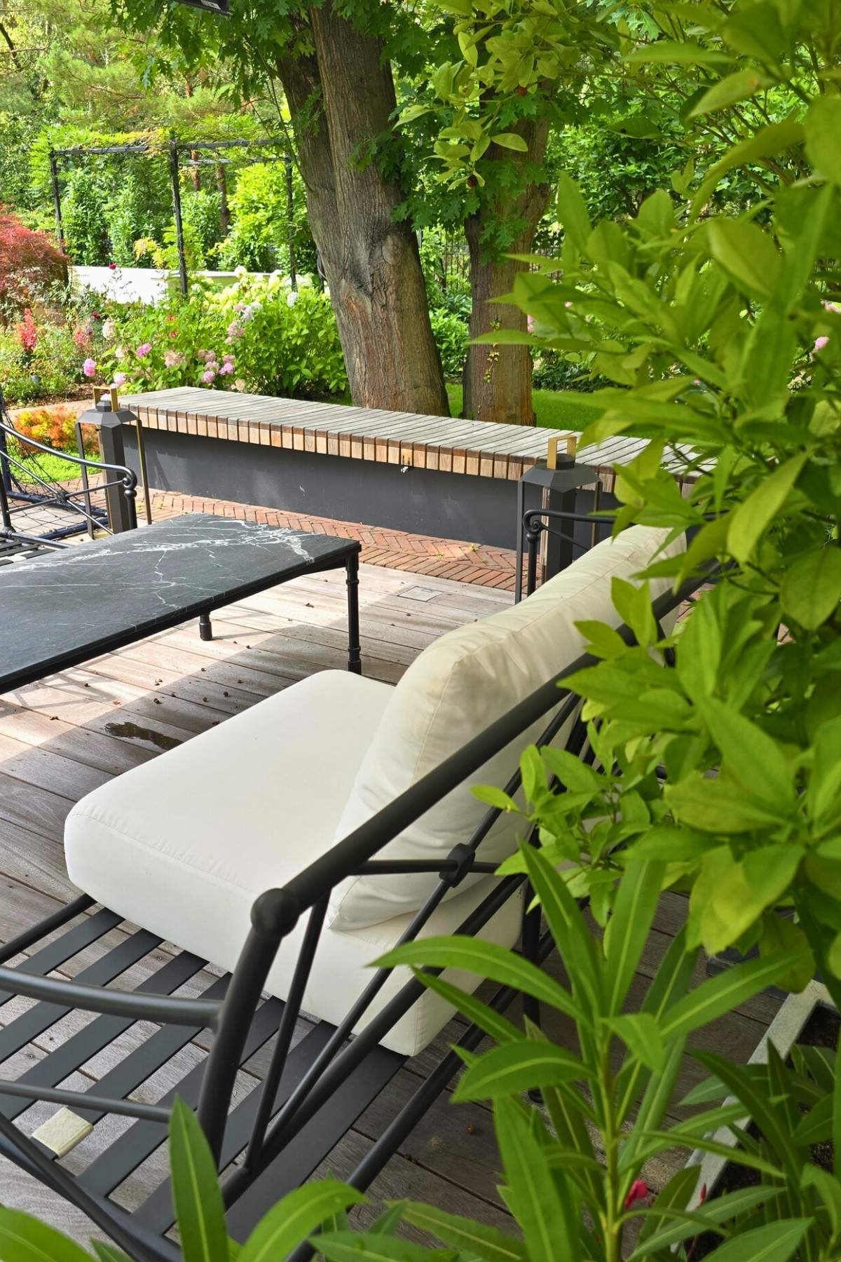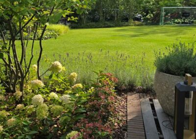 Całość została zaprojektowana tak, aby łączyć elegancję z naturalnością oraz zapewnić komfortowe przestrzenie do wypoczynku i codziennego korzystania z ogrodu.